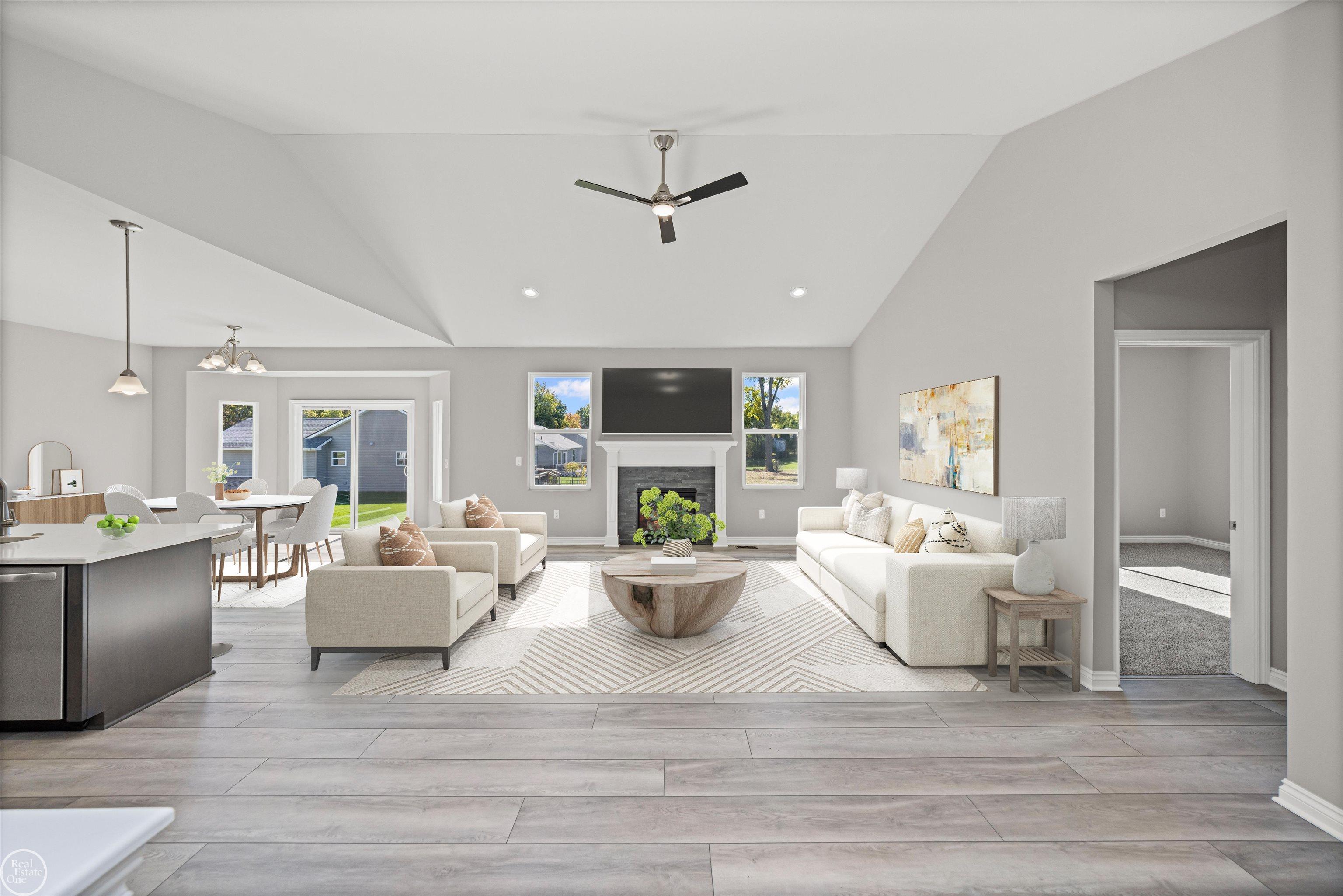 Welcome to the Parkway Ranch! This spacious 3-bedroom, 2.5-bath split ranch offers an open and functional floor plan with 9’ ceilings on the main level. The large family room features a dramatic cathedral ceiling and a gas fireplace creating a cozy living space. The open-concept kitchen includes a bay window, LaFata soft-close cabinetry, quartz countertops, a walk-in pantry, recessed lighting, and stainless steel appliances. The owner’s suite showcases a step ceiling, walk-in closet, and private bath with dual sinks and a quartz countertop. Additional highlights include a mudroom with built-in bench, first-floor laundry, and a full walk out basement with 9’ walls and three-piece plumbing prep for future finishing. High-efficiency mechanicals include a 96% furnace, central air conditioning, and a 50-gallon energy-efficient water heater. Bathrooms feature ceramic tile flooring and Kohler fixtures. Decorative craftsman trim details and brushed nickel hardware complete this thoughtfully designed home. Conveniently located near Hess Hathaway Park, White Lake Oaks Golf Course, and other local amenities. Photos are of a previously built home. To be built.